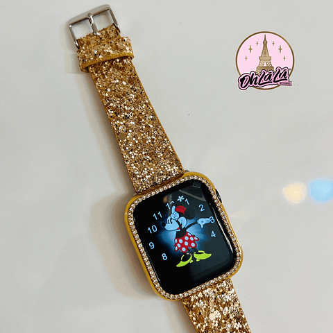 ☀️. Correa + protector dorado glitter