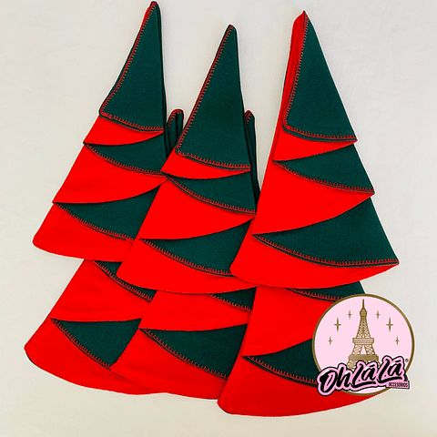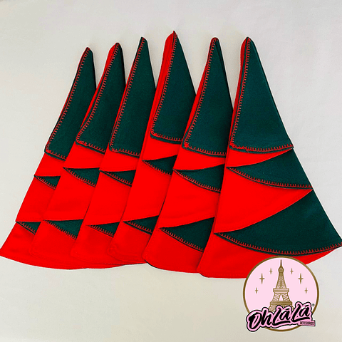 •Pack 6 servilletas tela con forma de árbol de navidad.